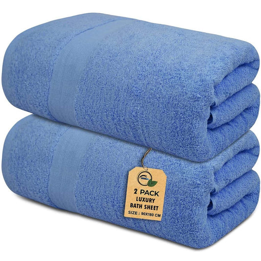 2x Sky Blue Luxury 100% Cotton Extra Large Bath Towels body Sheet Set 90 x 180cm 600GSM