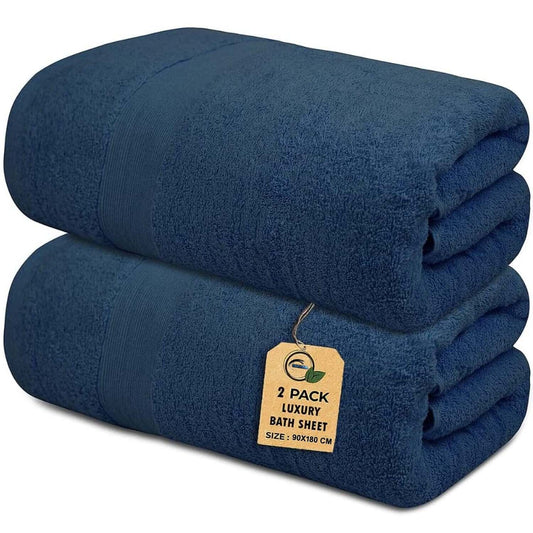 2x Navy Blue Bath Towels Set 600 GSM Extra Soft Luxury High Quality 90 x 180 cm
