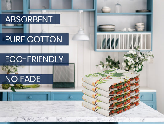 Printed Kitchen Tea Towels Set – Peacock, Fruits, and Butterfly Designs, 100% Cotton, Stylish, Chemical Free, & Machine Washable