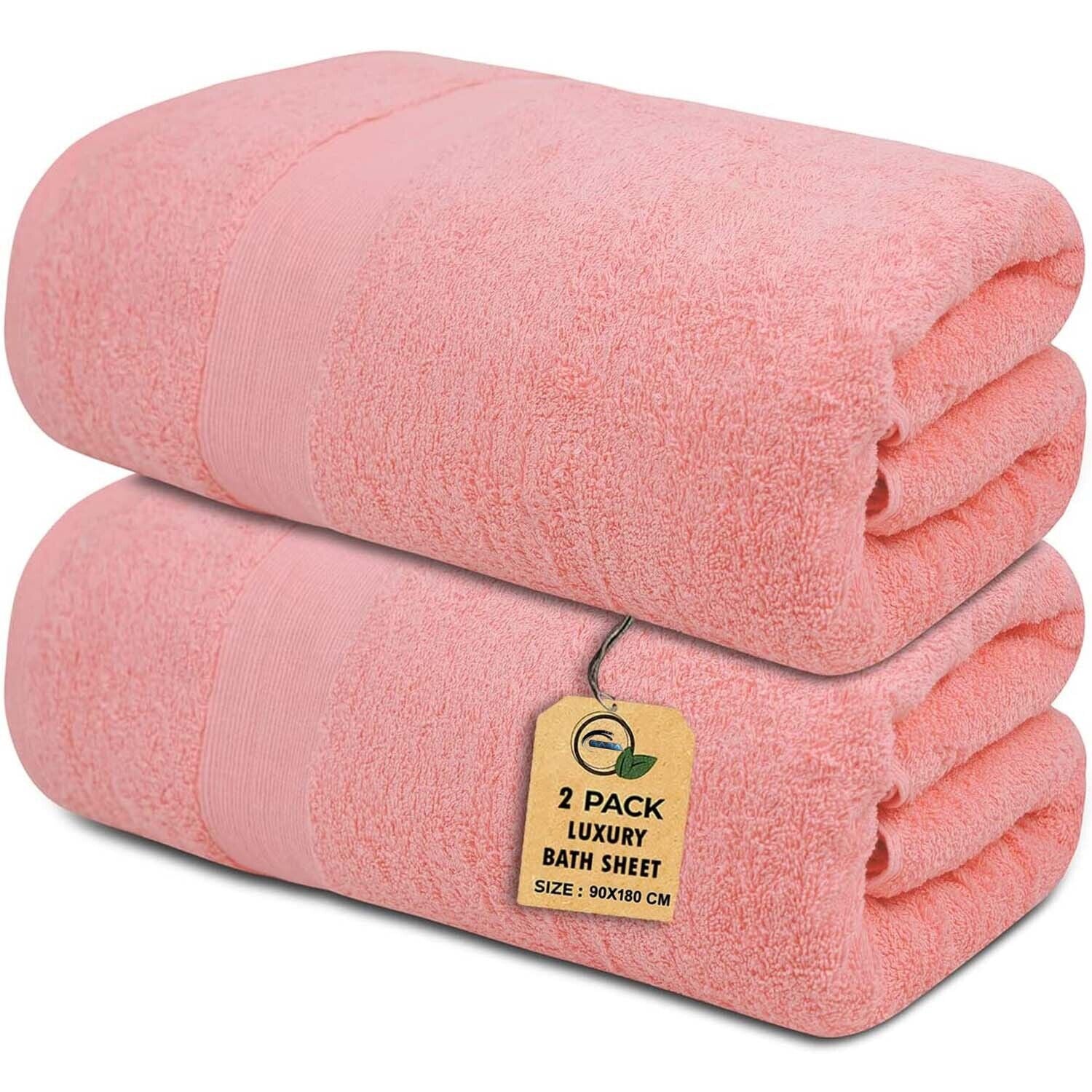 2x Pink Luxury Jumbo Bath Sheets 100% Cotton Extra Soft Shower Body Towels 90 x 180 cm