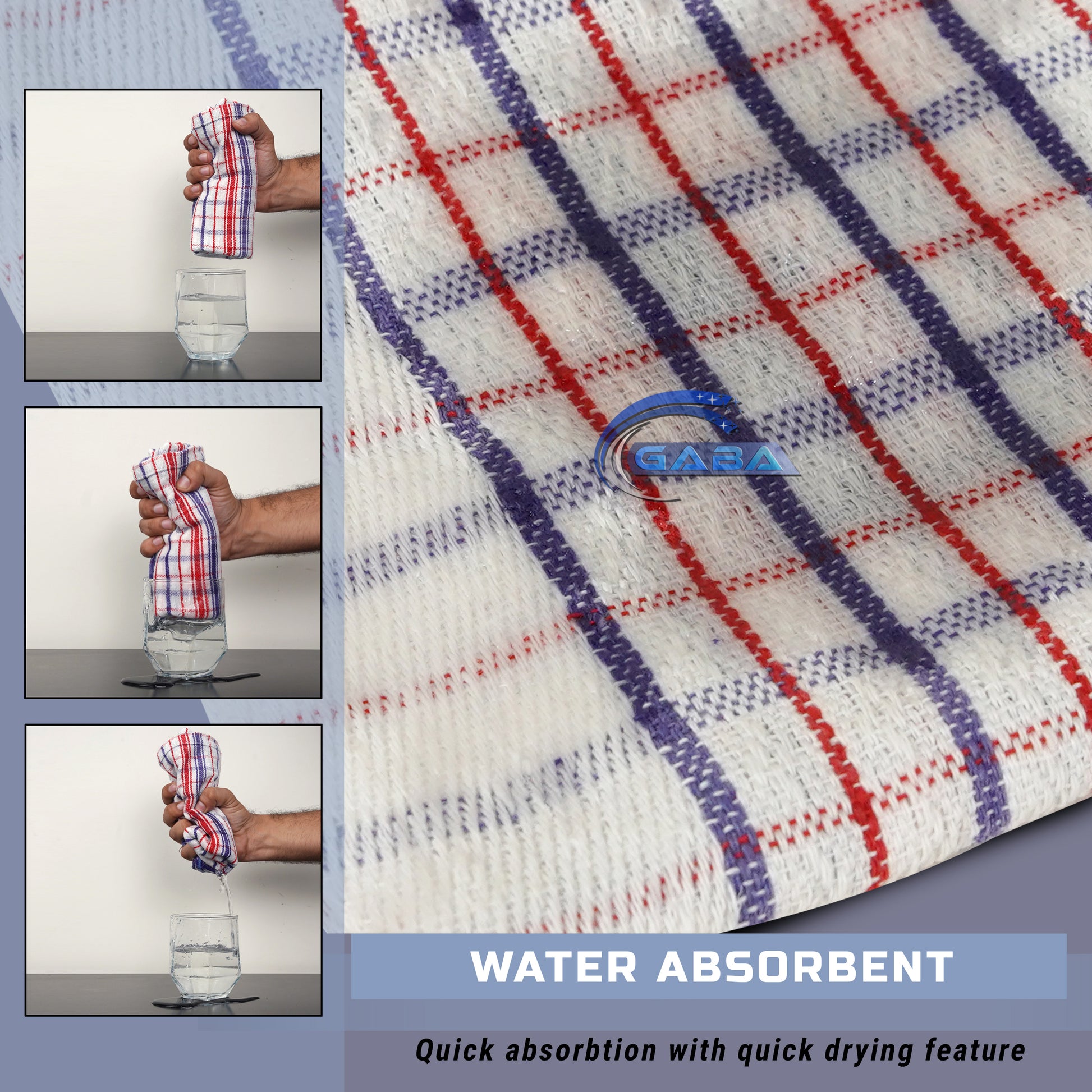 VALUE PACK: GABA Cottons Kitchen tea towels offer excellent value with a set of 5,10,20,30,40,50,60,100,200 towels in each pack, the check pattern on these dish towels adds an elegant touch, making them a wonderful gift for any chef you know.